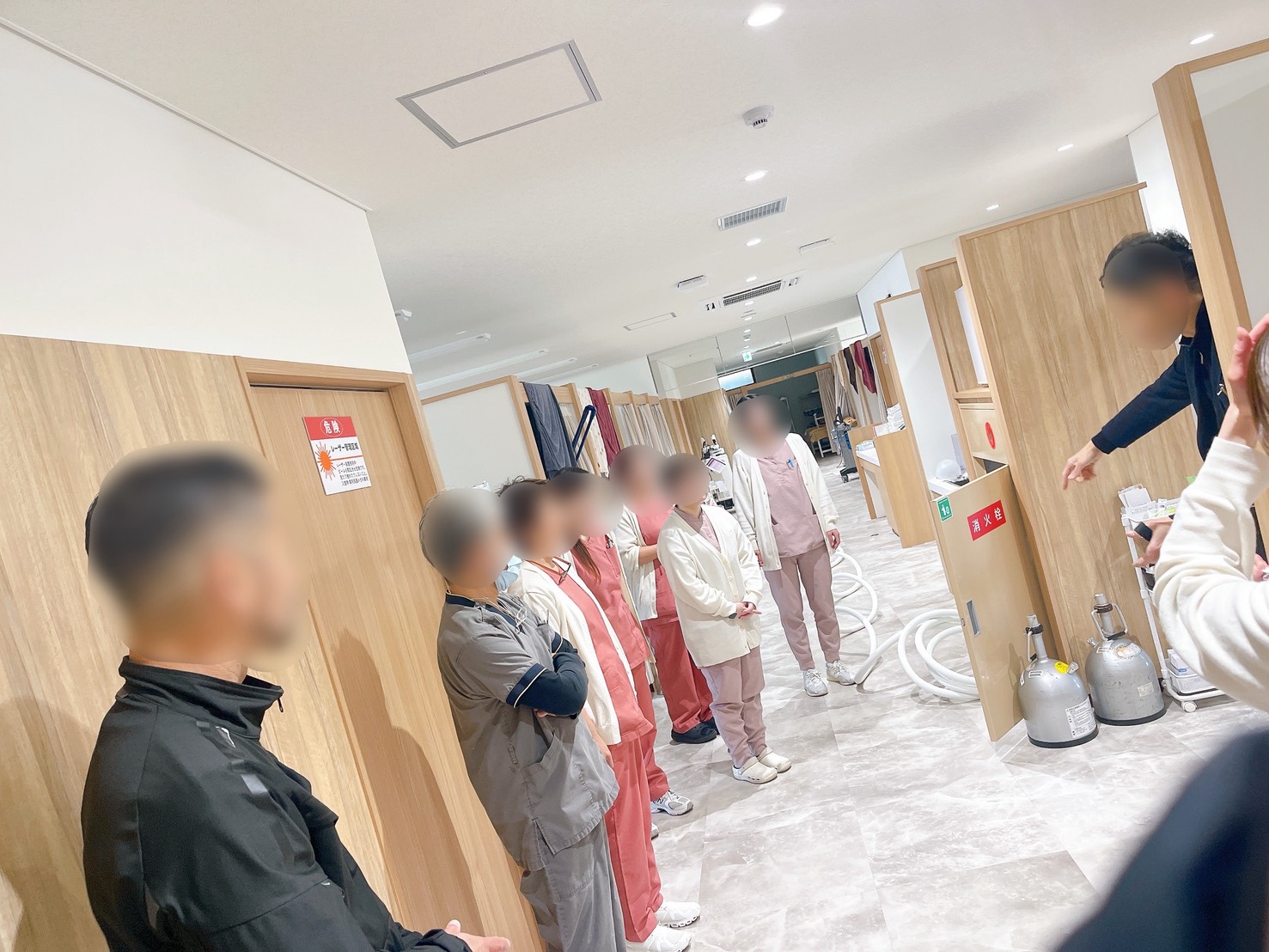 医療機関においては、来院される患者様やスタッフの安全確保が何より重要です。今回の訓練では、火災発生を想定し、通報・初期消火・避難誘導など一連の対応手順を確認しながら実践的な訓練を行いました。